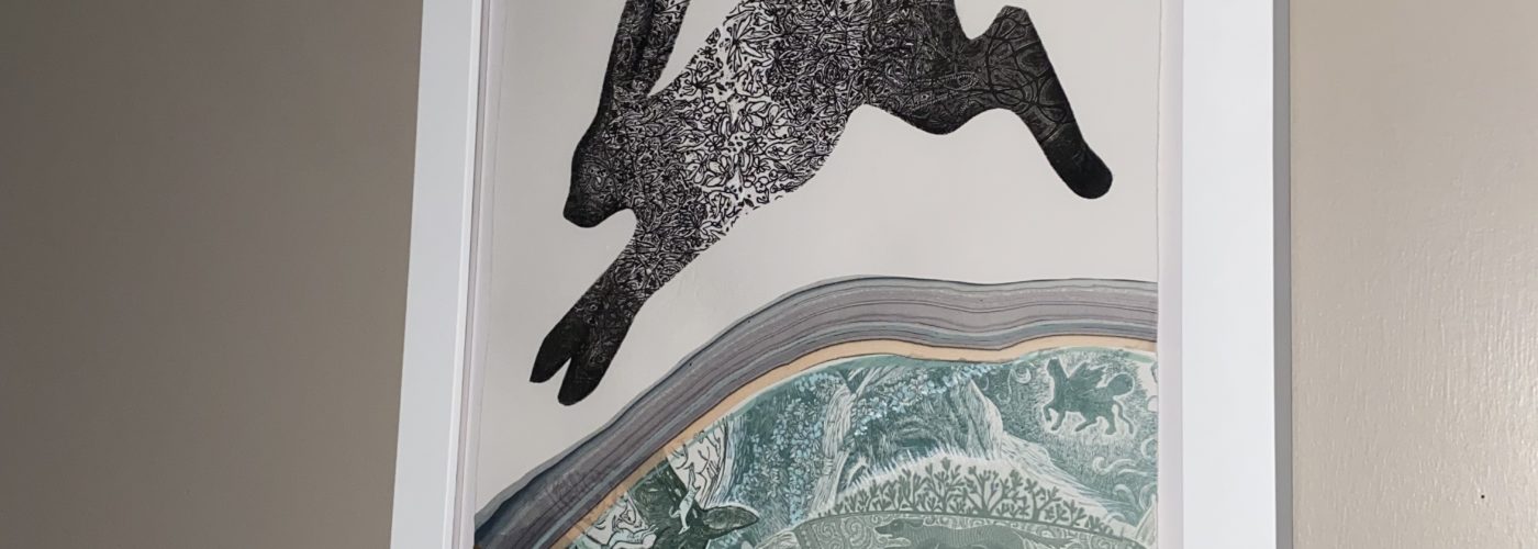 This is a monoprint, the process involves the inked plate hand cranked through one of my printing presses. The act of pulling the paper off of the plate makes each print a “hand-pulled print.” I never duplicate any of my hand pulled prints with digital prints, keeping their integrity as original print editions. Most of my editions are 100 or under, and all are hand-pulled.